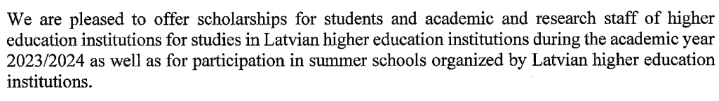 Scholarships in Latvian higher education institutions 6 februari, 20236 februari, 2023 ~ Kungl. Musikhögskolans Studentkår 10.2_284-latvian-state-scholarships-for-the-academic-year-2023Ladda ner Dela detta: Klicka för att dela på Facebook (Öppnas i ett nytt fönster) Facebook Klicka för att dela på X (Öppnas i ett nytt fönster) X Klicka för att e-posta en länk till en vän (Öppnas i ett nytt fönster) E-post Klicka för att dela via LinkedIn (Öppnas i ett nytt fönster) LinkedIn Klicka för utskrift (Öppnas i ett nytt fönster) Skriv ut Gilla Laddar in … Relaterade