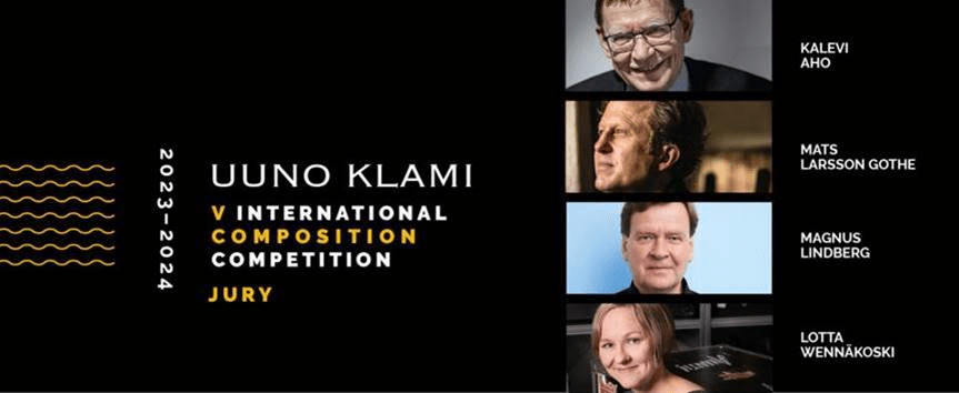 I have the pleasure to announce you that the V International Uuno Klami Composition Competition will be held between 2023-2024. Compositions must be submitted to the Competition Office 4 December 2023 at the latest.