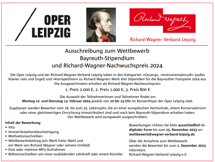 We hereby invite again to the competition in Richard Wagner’s birthplace.