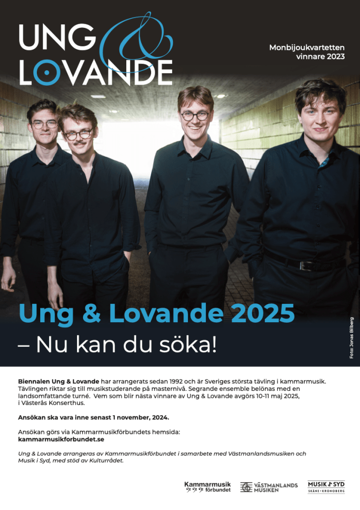 Ung & Lovande arrangeras av Kammarmusikförbundet i samarbete med Västmanlandsmusiken och Musik i Syd, med stöd av Kulturrådet.
